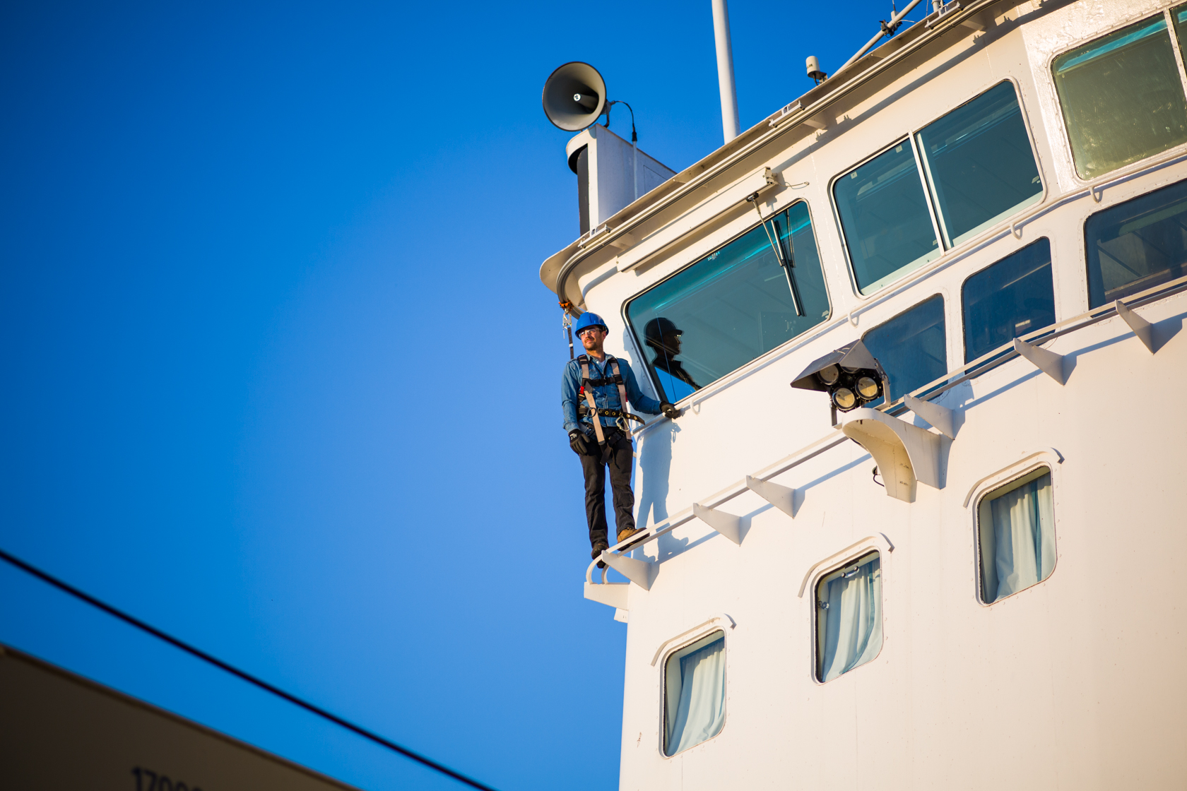 Structures pour ligne de vie Cette ligne de vie a été réalisée en 2017 afin de faciliter le nettoyage des vitres de la timonerie du brise-glace NGCC GRIFFON. Ce projet a été réalisé en 2018 chez Exceldor afin de sécuriser le personnel lors du déchargement des camions Ce projet a été réalisé en 2016 à Ville St-Catherine (Toiture BPT) afin de sécuriser le personnel lors des travaux sur la toiture.